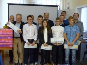 Gratulacje oraz symboliczne czeki pieniężne wręczone zostały laureatom przez Burmistrza – Grzegorza Niezgodę, Przewodniczącego Rady Miejskiej – Kazimierza Zachwieję